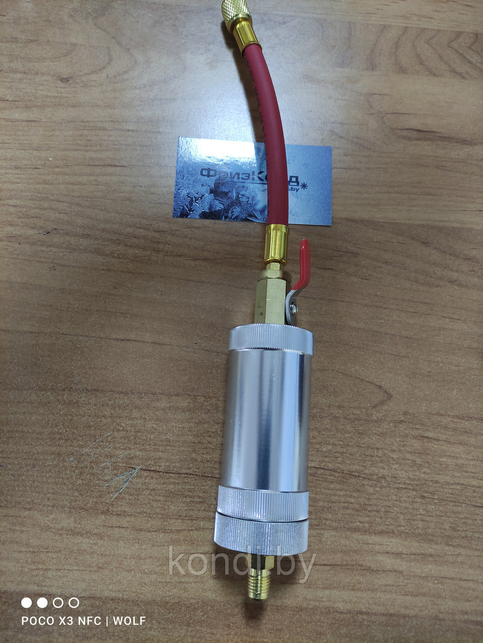 — включать в магистраль между баллоном с фреоном и манометрическим коллектором. Масло и UV краситель заправляются с потоком хладагента.